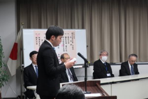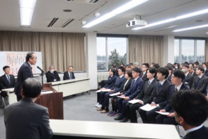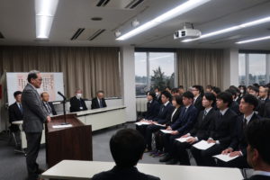 社長より辞令交付が行われ、緊張しながらも落ち着いた様子の新入社員でした。